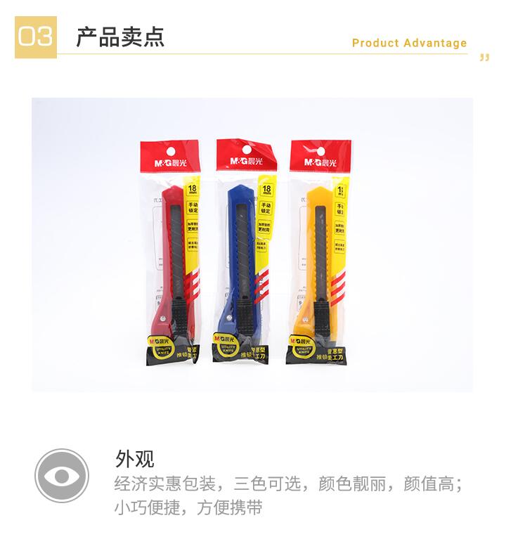 晨光美工刀 美工刀3把 大號壁紙刀小刀裁紙刀片快遞刀美工刀片工業(yè)用手動推鎖美術(shù)刀學(xué)生削筆刀